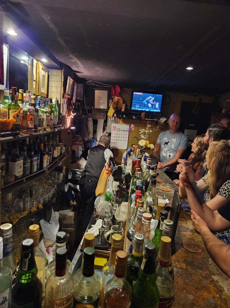 The final stop was a very old tiny bar that was standing room only with all of us there. The owner is an elderly man who is close friends with our guide. Most of the folks on the tour had whiskey, but a few of us tried a cocktail made with yogurt liqueur (I never even knew there was such a thing) and orange. It tasted like a creamsicle. Before leaving I asked the owner if i could take a picture with him.