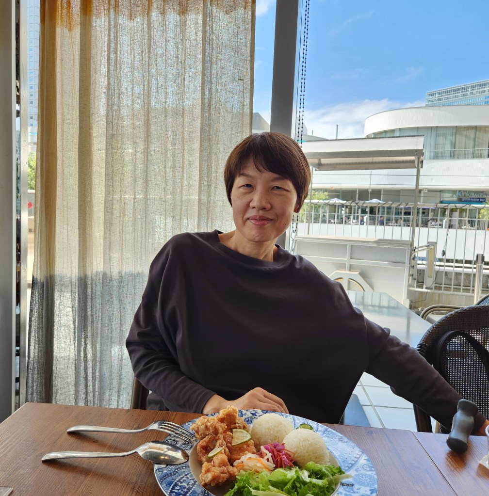 Today is my last full day in Yokohama and my last day to see Takako, so we met again at Yokohama Station. We walked around a shopping center there and found an Asian Fusion restaurant for lunch. I had fried fish with a vinegary dipping sauce and a mixed salad with citrus dressing. We sat by the windows and ate and chatted, then spent about an hour walking around inside the mall, window shopping.