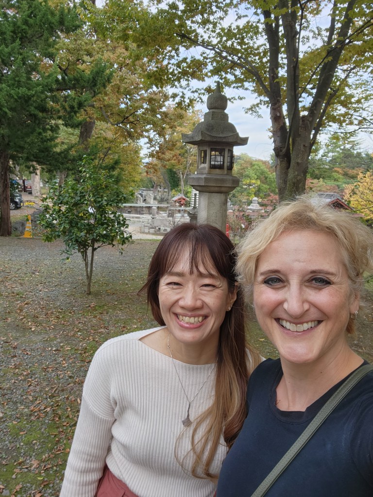 Today started with a beautiful Shinkansen ride from Tokyo to Nagano. Through the train window, the landscape changed from city buildings to suburbs to farms to mountains. My good friend Mariko met me at the train station. It was another 5 year reunion. Of my 3 friends here, I probably talk to Mariko the most – an hour skype session every week.
