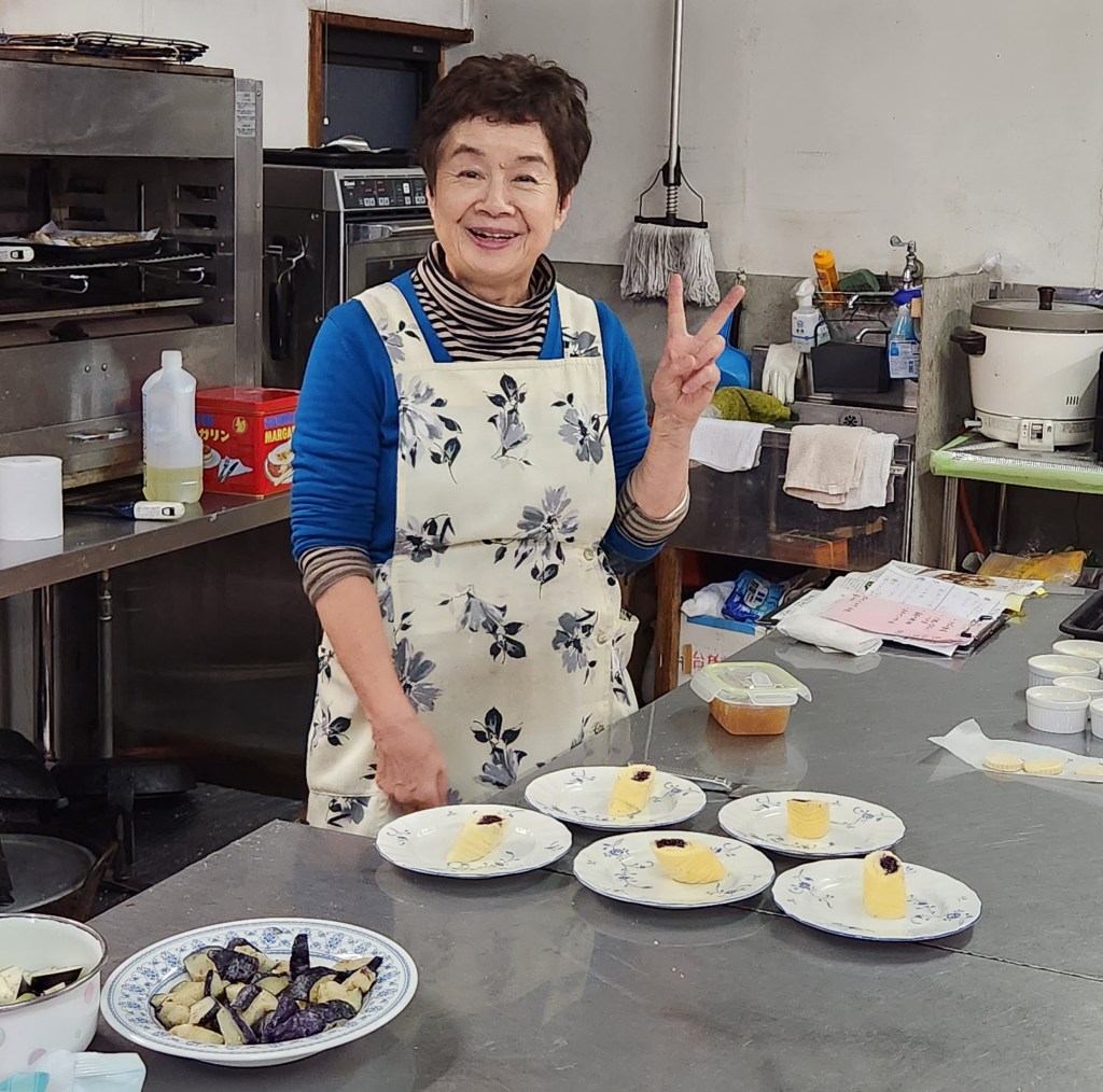 We arrived at Pension Azalea around 5 and I got a warm welcome from Mariko’s parents and sister. I was so happy to see them. I have only met them once, 5 years ago, but I feel close to them. Mariko’s mother served us cake and tea – she said it was “welcome cake” – a chiffon cake with blueberry filling and apricot on top. Most of the food that she makes there comes from vegetables and fruits grown and harvested either at the inn, or local.