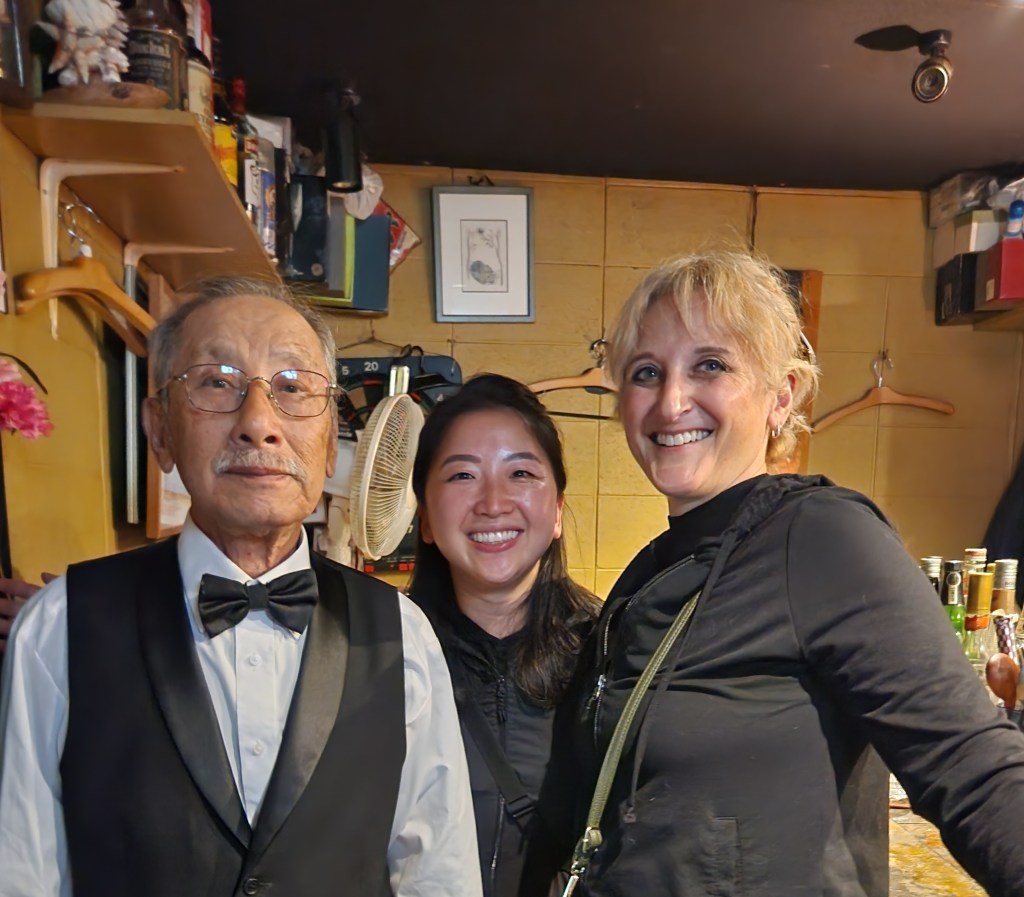 The next bar was in a multi-story building with hallways full of tiny bars. It was kind of like walking through a massive apartment building where each apartment is a quirky, tiny, themed bar. We ended up at a place called ZZ bar owned by an older couple who are musicians. The walls are packed with an incredible collection of vinyl records. We all got whiskey highballs and eventually the husband and wife performed a song – he played guitar and she sang and played the tambourine.