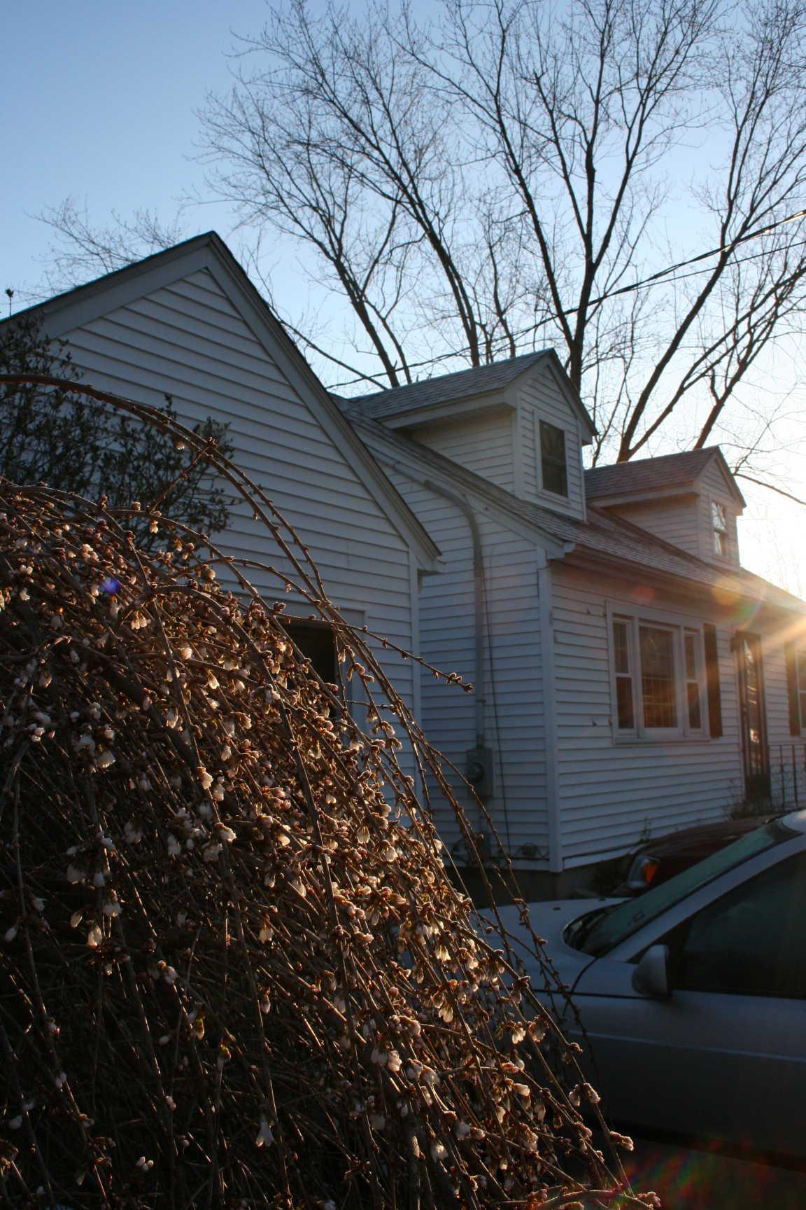 Cherry blossoms and frost in April