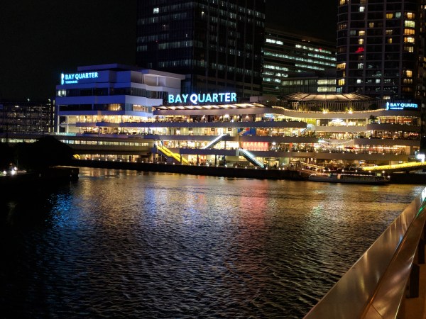I set my sites on it and started walking. It turned out to be a multi story shopping center overlooking the water, with restaurants, outdoor patios, shops and grocery stores. I went into a Kirin Beer pub. This time I sat a the bar, but there was no one else there to talk to. I got a beer, practiced reading the Japanese menu (they brought me an English menu as well – I guess I kind of stick out here). I had a nice walk back to the hotel.