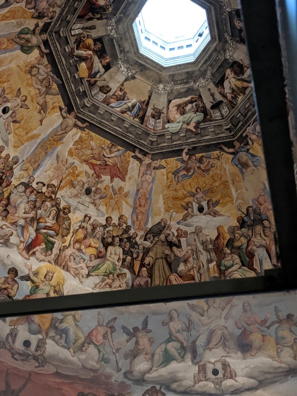 The frescoes include horribly disturbing images of Hell. My legs already felt weak from vertigo and the imagery made me feel slightly queasy. However, the magnitude and beauty of the engineering and architecture overwhelmed me with joy. I got choked up, I laughed with happiness, I clapped my hands. I attempted a couple of pictures but they don’t come close to capturing it.