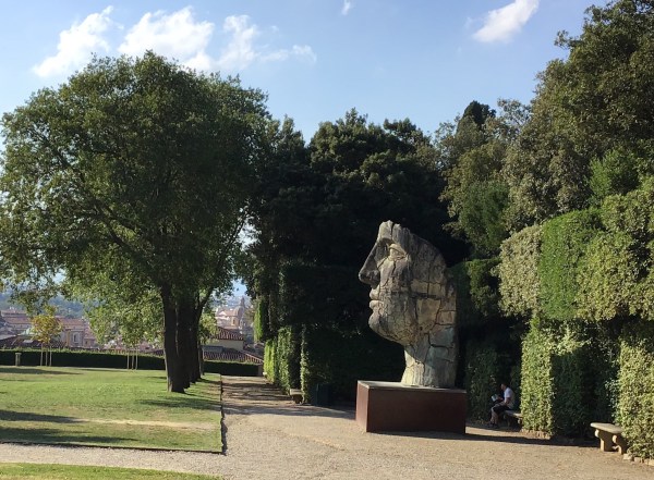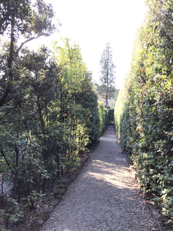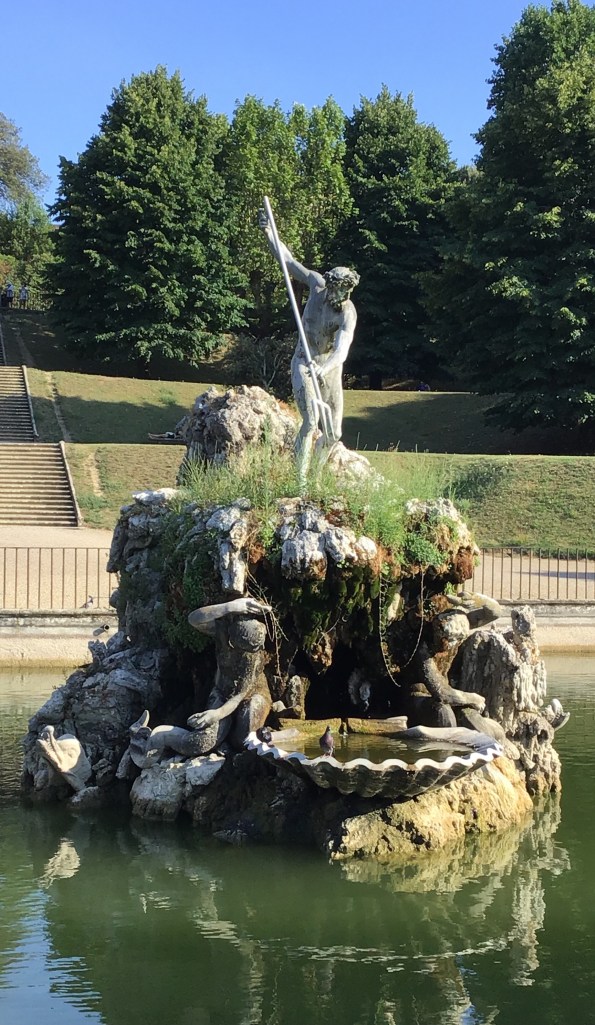 Sarah met me eventually and we talked about our favorites pieces and what we wanted to do next. We took a leisurely stroll across the Arno river on the Ponte Vecchio. We got tickets for the Boboli Gardens and found some shady paths to walk along. We climbed up several staircases to a sweeping view of Florence and then walked down along some narrow tree-lines paths. Near the exit we took a side path and found a huge grotto sculpture with stone seaweed hanging down and an underwater look.