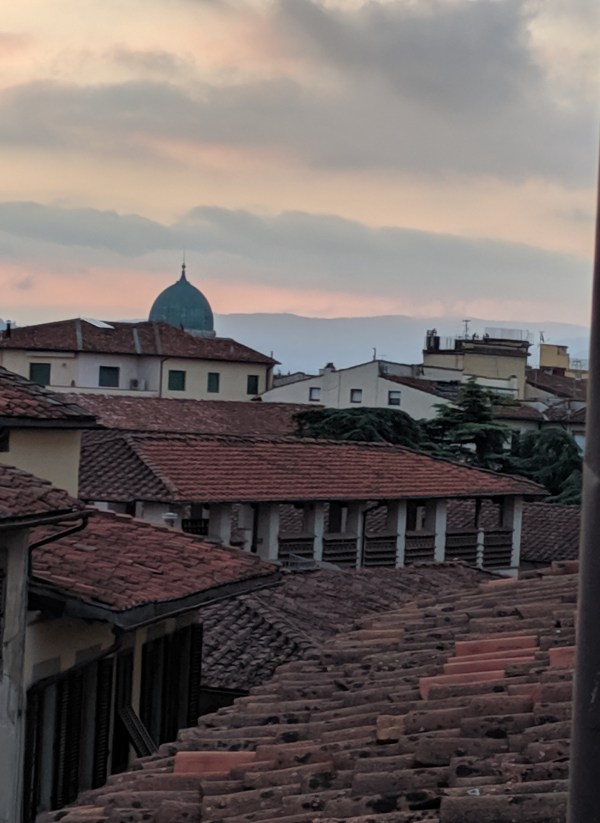 After that we found another outdoor restaurant for dinner, this time I got pasta with porcini mushrooms. Sarah and I split up again after dinner. She wanted to walk up to the Piazzale Michaelangelo and I wanted to go back to the apartment to shower and pack. I walked back down a different bridge and saw the sunset as I walked back along the Arno.