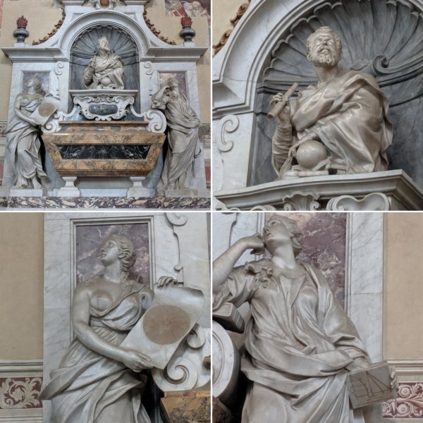 As early as we were there, the square was relatively quiet. We could walk around freely and spend as much time as we liked looking at the statues. We meandered over to the Cathedral of Santa Croce and got tickets for entry. Everywhere you look there is some over-the-top display: high ceilings, stained glass, marble inlays, religious frescoes. Lining the edges of the cathedral are memorial statues for famous deceased people seemingly with an association to Florence, from Marconi to Macchiavelli, from Dante to Florence Nightingale, to Galileo Galilei, who I particularly wanted to pay my respect to.