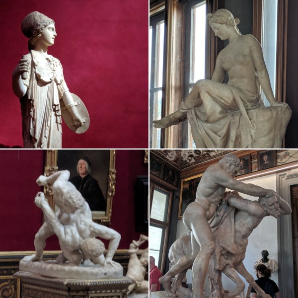 After lunch we had tickets for the Uffizi museum. We had to be there at a specific time window. We agreed to split up and meet in the cafe later. The museum is huge and overwhelming. A main hall with mazes of rooms off it. I focused mainly on the sculptures but also found some paintings that caught my eye.